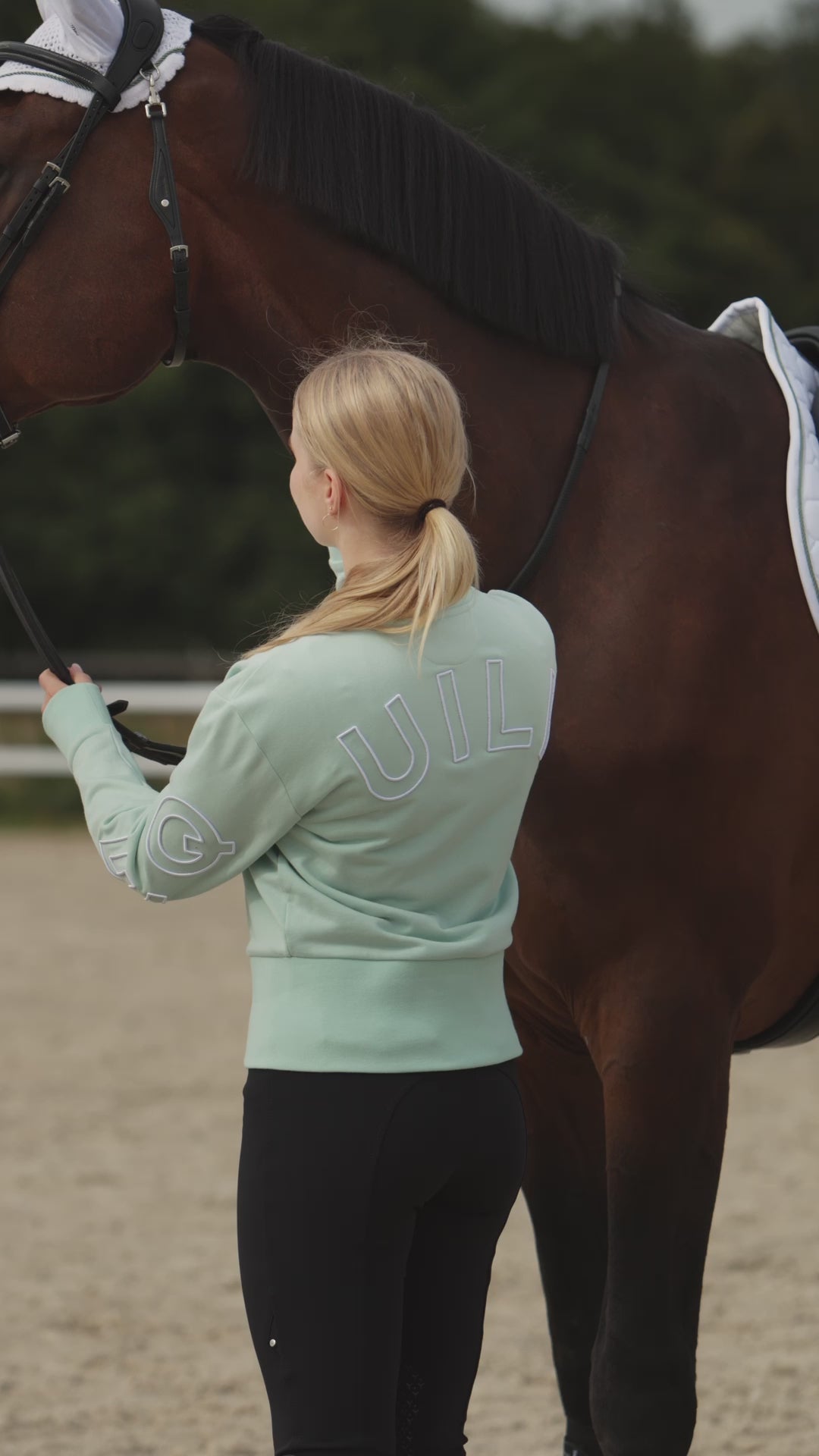 Der breite Rippbund am Saum sowie die weichen Rippbündchen an den Ärmeln sorgen für eine schöne und bequeme Passform. Auf der Rückseite ist das Sweatshirt mit auffälligem Equiline Schriftzug versehen, der dem Design einen sportlichen und markanten Look verleiht.