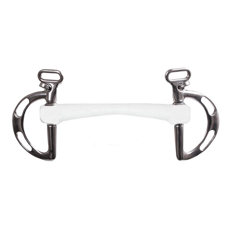 Der Inno Sense Mullen ist eine gerade Stange, die sich leicht nach vorne biegt. Dieses Mundstück ist aus synthetischem Material gefertigt. Das Gebiss hat einen starren Kern, der das Mullen nicht flexibel macht, aber das Material darum herum verleiht dem Gebiss ein weiches Gefühl. Das verwendete synthetische Material ist von der FDA zugelassen, was bedeutet, dass das Material ungiftig ist und keine Weichmacher enthält.