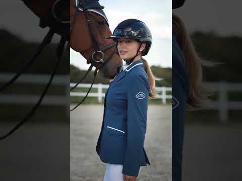 Elastisches und atmungsaktives Turnierjacket für Damen mit Equiline Micro-Laser-Einsätzen für zusätzliche Belüftung. Auf der Rückseite befinden sich zwei Schlitze. Das Jacket ist ungefüttert und daher pflegeleicht sowie leicht und luftig zu tragen.