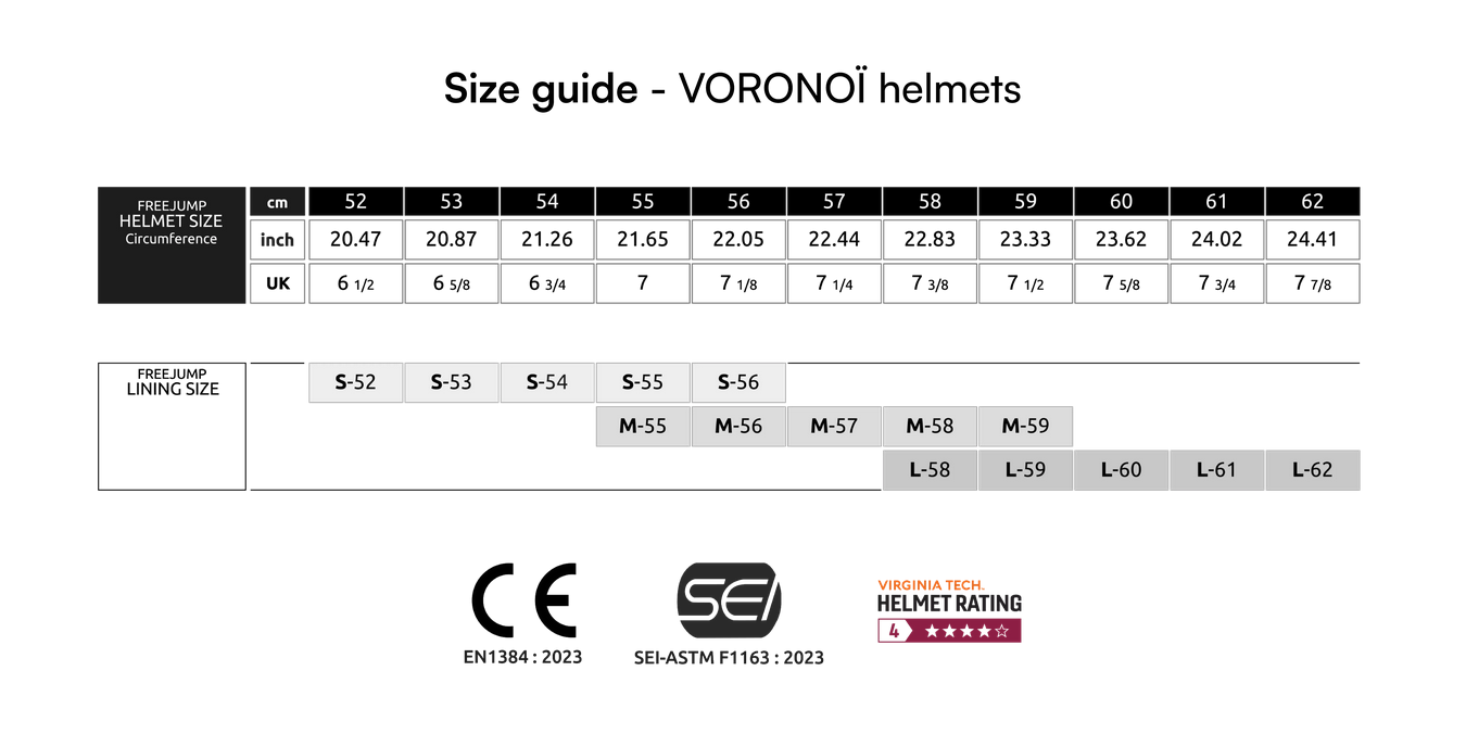 Die Voronoï-Außenschale kombiniert perfekt Leichtigkeit und Stärke für einen besseren Schutz von Schädel und Schläfen. Die Innenschale von Voronoï besteht aus EPS, einem der saugfähigsten Materialien auf dem Markt. Eine Rippe verstärkt die Struktur und sorgt für eine überdurchschnittlich hohe Druckfestigkeit. Freejump wurde von der Fahrrad- und Skihelmtechnologie inspiriert, indem eine Polycarbonatplatte direkt auf dem EPS integriert wurde. Diese In-Mold-Technologie aus EPS mit Polycarbonat in Kombination mit der Außenschale aus Kohlefaser bietet dank dieser 3-Lagen-Konstruktion eine außergewöhnliche Schlagfestigkeit.