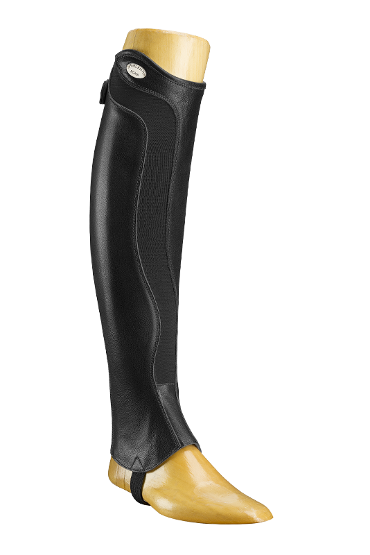 Mini-Chaps aus Büffelleder mit Gummizug vorne und hinten und mit extra stabilem Reißverschluss. Diese bequemen und robusten Chaps sind ideal für das Training in Kombination mit den K Comfy-Schuhen.