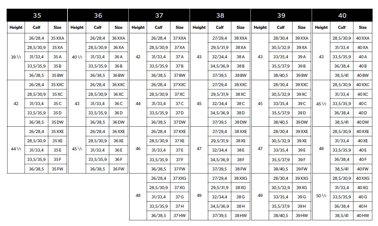 Gerne helfen wir Ihnen bei der Ermittlung der richtigen Größe. Sehen Sie sich diese Erklärung an, um Ihre Größe zu bestimmen, und sehen Sie sich dann die Größentabelle an, um die richtige Größe zu ermitteln. Nehmen Sie gerne Kontakt zu uns auf oder kommen Sie vorbei und probieren Sie die Stiefel in unserem Geschäft an.